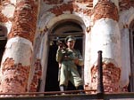 Это было потрясающе.... старая усадьба, заброшенный яблоневый сад в цвету... и розовые лепестки ложатся на золотые погоны... Само место заставляет многое вспомнить - русское дворянство, трагедию русского народа... разорение дворянских имений... и смерть в окопах.... в солнечный весенний день, под цветущими яблонями....