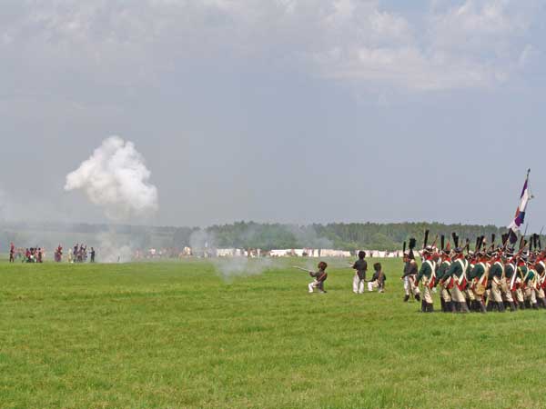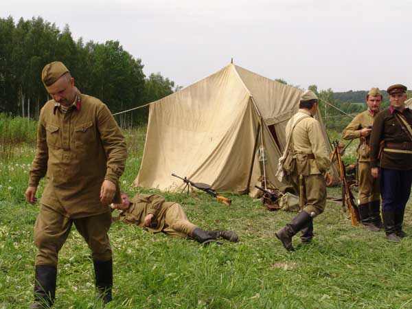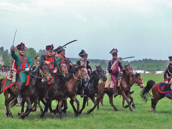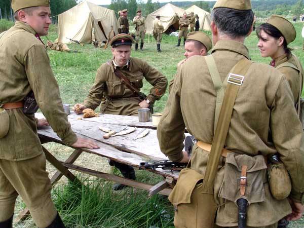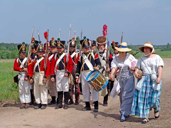 В конце мая, на бородинском поле происходит праздник боевой славы русских войск, когда на одном месте, в одно и тоже время можно увидеть, как солдат армии Кутузова 1812 прикуривает у сержанта Красной армии 1941 года, и все вместе - с солдатами современной роды армейской разведки, т.с. спецназом. Такое ощущение, что какой то "спец" сунул отвертку в машину времени, и все смешалось.... по Бородину гуляют солдаты, кавалергарды, французские куртизанки, спецназовцы, майоры НКВД, и современная милиция... и, конечно... многочисленные обыватели с детьми... с мороженным, пивом и шашлыками..