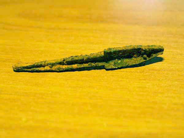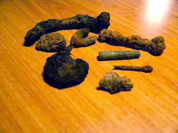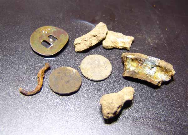 пуговица... рыболовный крючок... и какие то медные обломки...