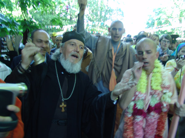 индуистских монахов и православного священника, на одной