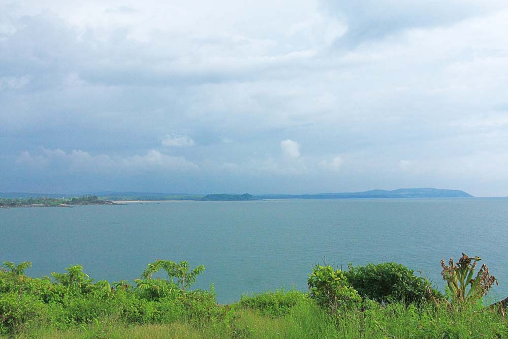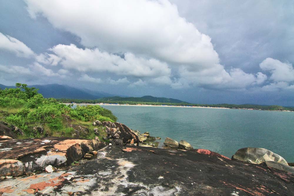 вид на кристально чистые воды и пальмовые рощи, немного сужающие в