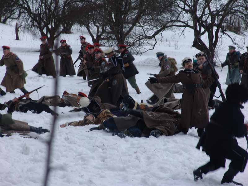 Конечно, было очень интересно и энергично... клацали затворы, бойцы обеих сторон, еще не разделенные боем, деловито перебирали патроны... Красный пулеметчик клянчил у немецкого офицера патронов, что бы "добить" ленту... а иначе, он не сможет его взвод уложить одной очередью... и тот делился, желая умереть достойно на поле боя... с какой то своей, недоступной для меня правдой... сапоги медленно промокали в весенней снежно-грязной жиже... но это было уже не важно... всех захватывал предстоящий бой.... только весь подвыпившие махновцы вдохновенно выводили рулады о смелом атамане... птицы стихли.. окна разрушенной усадьбы вытаращились пустыми глазницами... опять... опять сейчас начнется...