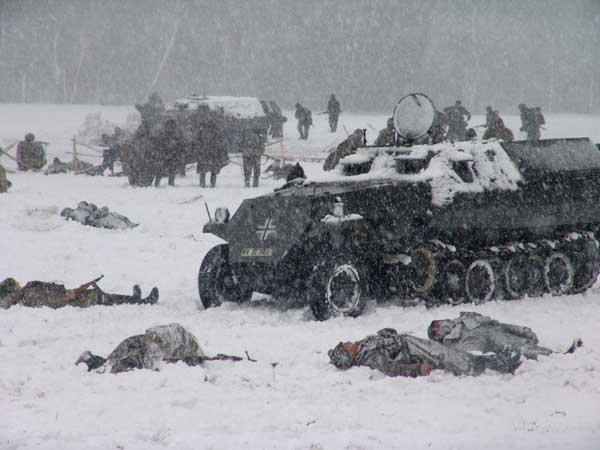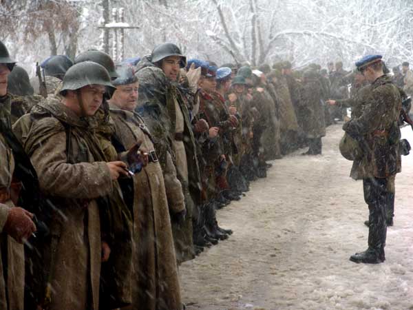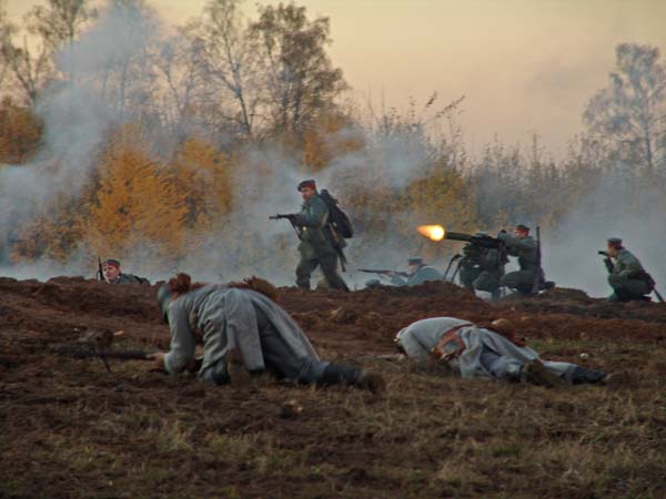 Как то не представляется - как это - в окопах? Умом понимаю, конечно... длинная такая яма, и все в ней сидят... но - но представляется, когда все промокло насквозь.. под снегом, когда коченеют почерневшие пальцы, трескается кожа, ломаются ногти... и не на пару часов инсценировки, а потом - в теплую машину, с кофе и домой... а - неделями, месяцами, годами . и не просто "сидеть" - а, простите - воевать... стрелять обледеневшей винтовкой, дыханием соскребая лед с замка...