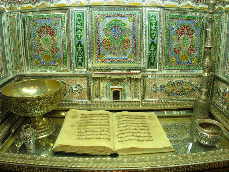используется кусочек глины! В разных мечетях единого комплекса люди сидят на полу, читают книги, слушают проповеди... Атмосфера мечети совершенно отличает ее от христианской церкви - здесь не существует формально-дисциплинирующего начала, здесь не ставят свечки к иконам, сюда не приходят на литургию к назначенному часу. Но тем сильнее внутренняя сосредоточенность человека, остающегося наедине с Богом. Здесь можно сесть по-турецки, опершись о стену или колонну, и сидеть так часами среди молящейся, читающей и спорящей о вопросах веры публики. Если поднять свой взор к куполу, вы увидите бесконечно переплетающиеся буквы Священного Писания, странную божественную игру их очертаний, вечно сливающихся и расходящихся. |