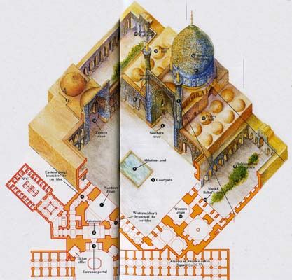 Вокруг святилища расположены внутренние дворы с галереями и гробницами.