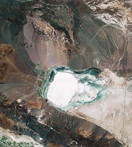 завораживает... это внушает какой то внутренний трепет и даже страх! Наверно, так должен выглядеть Ад... не веселым потрескиванием огня под сковородкой, не игривые чертенята с вилами и кочергами... а вот так - безнадега, пустыня... и два черных ангела на мотоциклах:) Слева - вид озера из космоса. Трудно не заметить! ![]() |