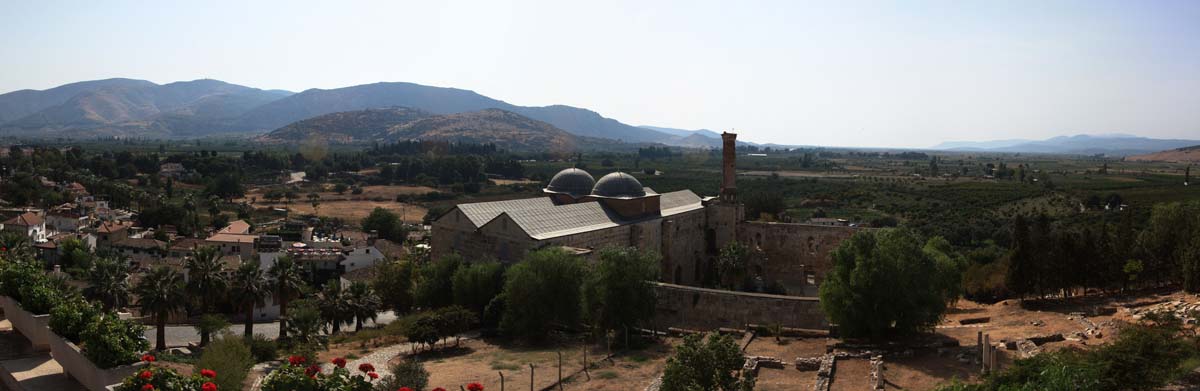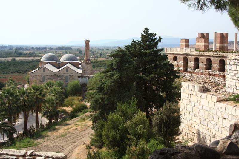 В цитадели император Юстиниан в VI в. н.э. приказал возвести над предполагаемой могилой апостола Иоанна величественную Базилику св.Иоанна, полностью облицованную изнутри мрамором. Сооружение было настолько грандиозным, что для закладки его переднего двора (сегодня терраса с прекрасным видом на равнину) пришлось удлинить холм, уложив под него специальные несущие конструкции! Ниже цитадели расположена мечеть Исыбея, |