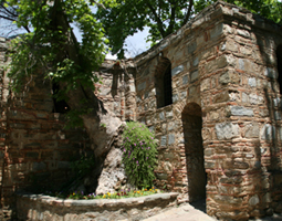 Базилика св.ИоаннаПринято считать, что здесь провели последние годы жизни дева Мария и апостол Иоанн. Считается, что Апостолу Иоанну, дожившему до 100 лет и единственному из учеников Христа умершему своей смертью, принадлежит одно из четырех канонических текстов евангелия. Здесь же, на предполагаемом месте захоронения апостола в VI веке по приказу императора Юстиниана была возведена величественная базилика. Проект базилики не умещался на холме, и для него пришлось специально расширять холм, укрепив его склоны. Вокруг базилики была возведена крепость, при строительстве которой в основном использовались камни стадиона античного Эфеса. В ворота крепости вставлен античный барельеф, изображающий смерть Геракла, который в раннехристианское время ошибочно воспринимался как образ мученической смерти. |